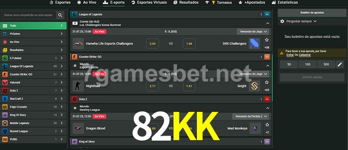 O 82KK oferece uma grande seleção de opções de apostas em e-sports com probabilidades competitivas